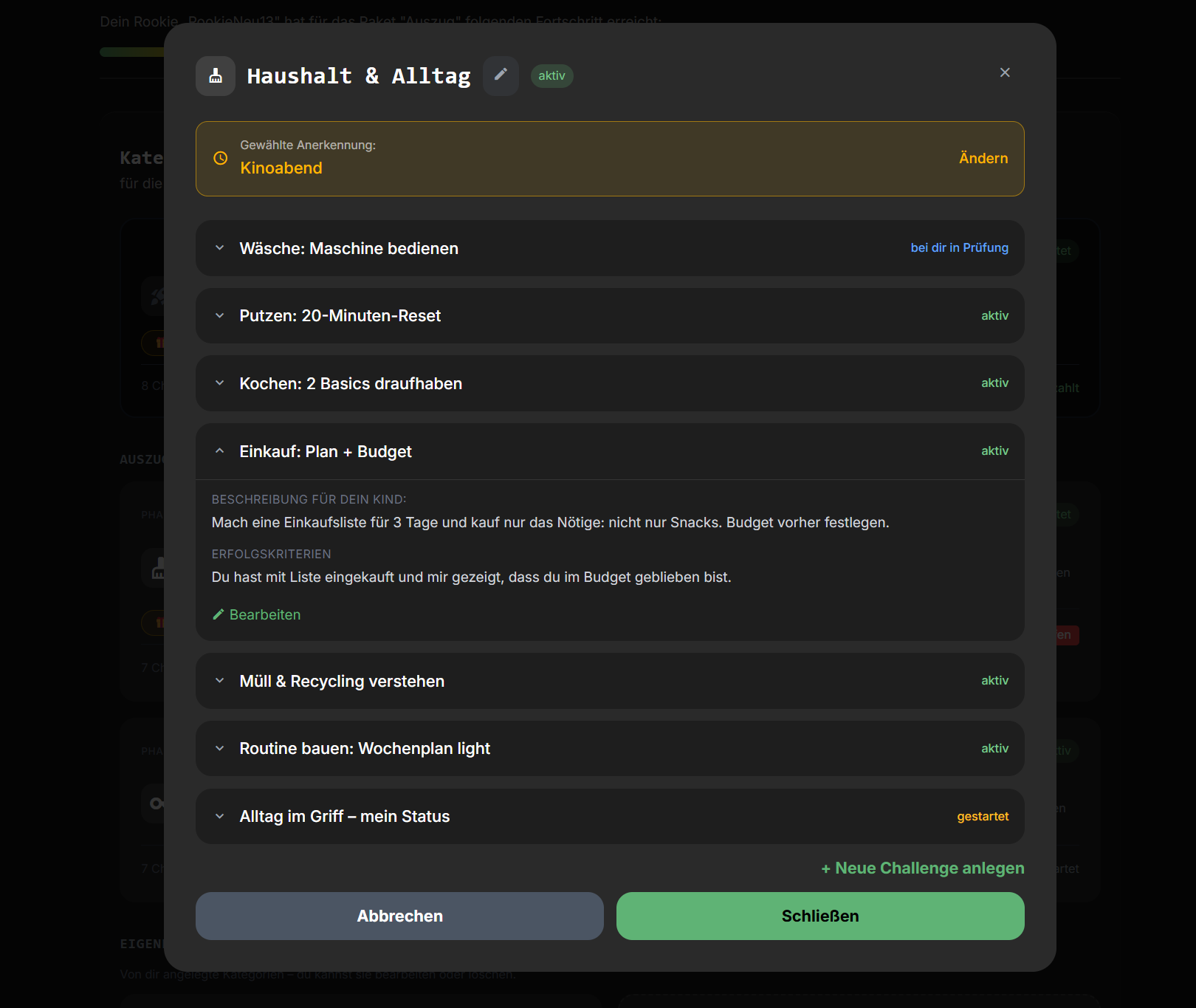 - Kannst Challenges anpassen oder eigene hinzufügen
